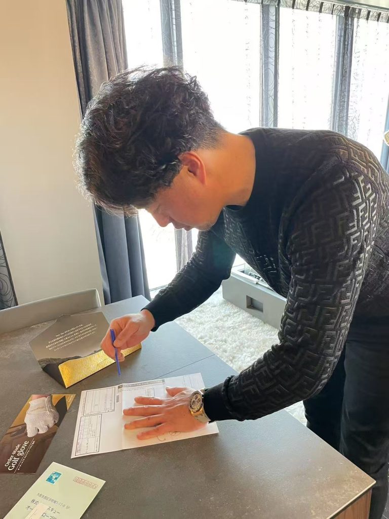 出来上がりのグローブは、自分の手のサイズや形に合わせて作られるため、手の動きにぴったりフィットし、ショットの精度が高まるそうです!